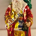 MIKOŁAJ  PODRÓŻNIK – piękny Mikołaj z bukłakiem pod pachą i kosturem w dłoni . Niesie lalkę szmaciankę oraz trzosik monet.