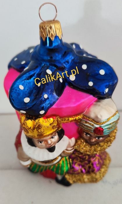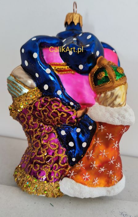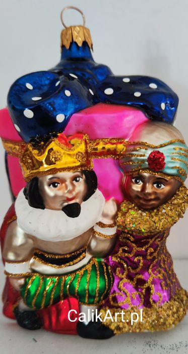 TRZEJ KRÓLOWIE niosą wspólny prezent z pięknie udrapowaną kokardą.